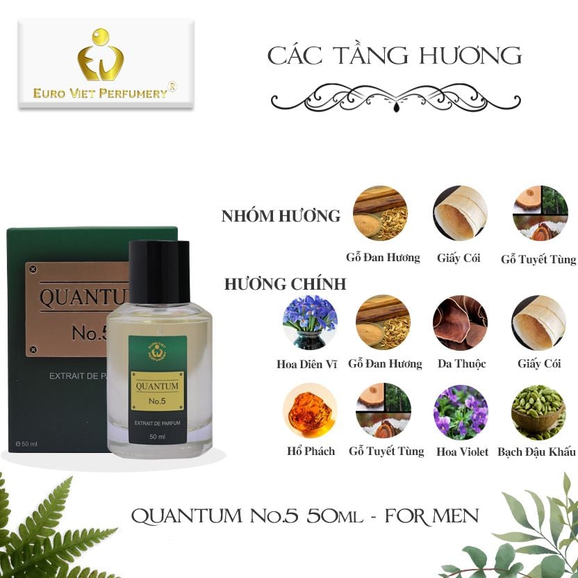 Cái không khí ấy là sự tổng hòa của rất nhiều các nốt hương được hoàn quyện hài hòa dưới bàn tay của nghệ sỹ điều hương Frank Voelkl, từ chủ điểm Gỗ đàn hương, thêm chút Lá cói để tạo ra hiệu ứng gỗ tươi, cùng Da thuộc để làm đanh cái không khí lại cho giống với một xưởng gỗ và những bụi gỗ được tạo ra từ cảm giác phấn bụi của Diên vĩ và Violet. Mọi thứ được sắp xếp một cách ngăn nắp và ẩn chứa rõ ý đồ trong từng note hương Quantum N0.5 , tạo thành nét ấn tượng đem tới thành công cho mùi hương này.