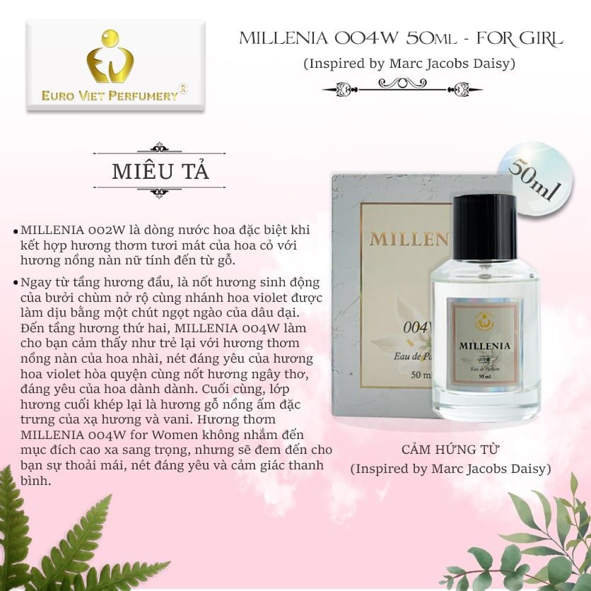 Nước Hoa Nữ Cao Cấp MILLENIA 004W Tươi Mát, Nhẹ nhàng, Trẻ trung Eau De Parfum Lưu Hương 6 - 8 tiếng 50ml